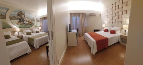 This 3-star, family-run hotel offers a cozy and convenient stay just a few yards from the Sanctuary of Our Lady of Fátima and the Paulo VI Conference Center. Our accommodations is in the perfect location to enjoy a stay close to the most popular tourist attractions in Fátima. Many of the rooms have a balcony or terrace, providing stunning views of the imposing Church of the Holy Trinity and the famous Candlelight Procession. Most of the rooms, bathed in natural light, are decorated with murals painted by André Pontes. All of the rooms are equipped with access to free WI-FI, satellite TV and a private bathroom, which guarantee the comfort and convenience of our guests. Our Restaurant offers a diverse Buffet, highlighting both the authentic flavors of Portuguese cuisine and international dishes (always subject to availability). Parking is covered, private and free. The bus station is just a few yards away, making travel easier. Just a few yards away, the varied Museums of Fátima add a cultural touch to the experience of your stay.