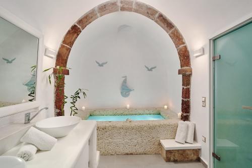 Built in traditional Cycladic architecture, Santorini Mansion at Imerovigli is centrally located in the village. It features accommodations with views of the caldera and the volcano. Free Wi-Fi internet access is available throughout the property. The cave-like units are air-conditioned and provide a flat-screen satellite TV, DVD player, safe and fridge. Some include a private room with spa bathtub and a kitchenette with kitchenware. A continental breakfast can be served in the privacy of your room upon request. Mini markets, bakery and taverns are only 100 yards away. Free parking is available nearby. Santorini Mansion in Imerovigli is just one mile from Fira town and 5 miles from the airport. It is 6 miles from the port.