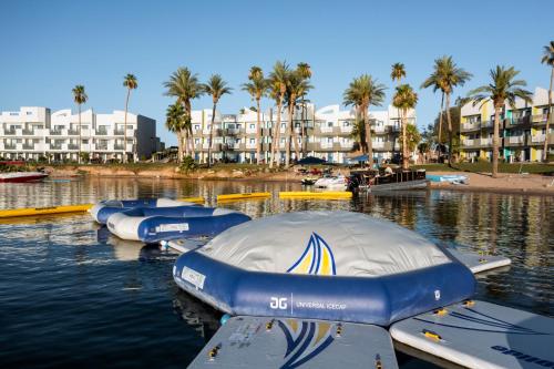 Offering on-site dining and a pub, this lake-front resort is adjacent to Lake Havasu Golf Course. A seasonal infinity pool and children’s water park are located on site. All rooms include free Wi-Fi. Lake views and cable TV are featured in each room at The Nautical Beachfront Resort. All bright rooms are equipped with tea and coffee-making facilities. A fridge and microwave are provided. The Turtle Grill offers a casual dining environment serving burgers, seafood and salads. Guests can take a break from their swim in the infinity pool and grab a cocktail at the seasonal Wet Bar. The Nautical Beachfront Resort Lake Havasu is 3 miles from Windsor State Park. London Bridge is 4 minutes’ drive away.