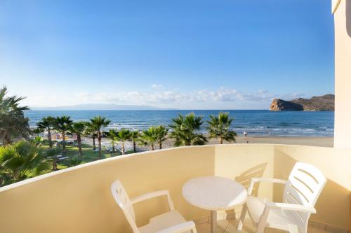 Situated right on the beach of Agia Marina, Georgina hotel features an outdoor pool with separate children’s section. Set amidst a palm-tree garden, it offers self-catered accommodations with a balcony and free Wi-Fi. All air-conditioned studios and apartments include a flat-screen TV with satellite channels and safe. Decorated in gray and blue tones, each has a kitchenette with a fridge, stove and coffee maker. Some accommodation types enjoy Cretan Sea views. Guests can find several taverns, bars and super markets within a short walk from the property. Georgina is located 6 miles from the scenic Chania Town and 11 miles from Souda Port. Chania International Airport is 16 miles away.
