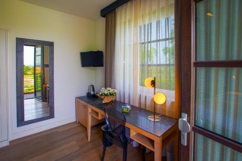 Podere del Priorato is a charming farmhouse that has been completely renovated to offer modern rooms and apartments. It is 5 minutes' drive from the Orbetello Lagoon Nature Reserve. This eco-friendly former farmhouse is surrounded by vineyards and sunflower fields. It is ideal for reaching Orbetello, Monte Argentario and Isola del Giglio by ferry. Accommodations has modern country-style furnishings including wood floors and LCD TVs. All rooms are air conditioned and feature a mini-bar, while the apartments have a kitchenette with dishwasher. Homemade cakes and local produce are served at rich breakfast each morning. Free Wi-Fi is available throughout the property and free parking is also provided. A car is the best way of getting around.