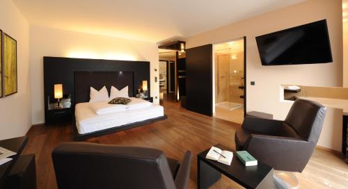 Located in Silandro’s center, Hotel Vier Jahreszeiten, features 2 swimming pools, a free spa with bio sauna and hot tub. It also offers a furnished sun terrace and rooms with a balcony. Wi-Fi is free throughout. The hotel organizes biking and hiking tours, horse riding at a school 984 feet away. Each elegant room at Vier Jahreszeiten Hotel is fitted with a flat-screen TV with satellite channels and dark-wood furniture.The bathroom has soft bathrobes and slippers and free toiletries. Breakfast is a sweet and savory buffet that includes homemade cakes, cold cuts, and fresh fruit. Guests can dine al fresco at the gourmet restaurant with an à la carte menu of local and international dishes. There is a billiards table, a multimedia room, and a shuttle service to the station. Garage parking is free and Schlanders Train Station is a 10-minute walk from the hotel.