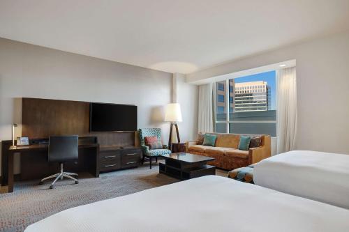 Free Wi-Fi and an on-site restaurant with a bar are among the convenient amenities offered at this Plano hotel. Dallas/Fort Worth International Airport is 25 miles away. A flat-screen cable TV and a seating area are provided in each room at Hilton Dallas/Plano Granite Park. There is also a coffee machine. You can relax in the outdoor swimming pool at Hilton Dallas/Plano Granite Park. Dallas city center is 27 minutes' drive from the hotel. Hewlett-Packard is 1 mile away.