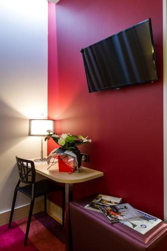 Hôtel Le Châteaubriant in Châteaubriant has 3-star accommodations with a shared lounge, a terrace and a bar. The air-conditioned rooms provide a city view and come with a desk and free WiFi. At the hotel, the rooms are equipped with a closet. All rooms in Hôtel Le Châteaubriant are equipped with a flat-screen TV and free toiletries. A buffet, continental or gluten-free breakfast is available at the property. Rennes–Saint-Jacques Airport is 38 miles from the property.