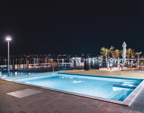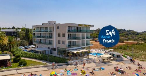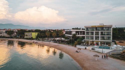 Located in Novalja, a few steps from Lokunje Beach, Kaneo beach hotel Novalja has accommodations with a seasonal outdoor swimming pool, free private parking, a garden and a terrace. This 4-star hotel offers luggage storage space. Offering free WiFi throughout the property, the non-smoking hotel has a hot tub. The hotel will provide guests with air-conditioned rooms with a desk, a safety deposit box, a flat-screen TV, a balcony and a private bathroom with a shower. Certain rooms are equipped with a kitchen with a fridge, a dishwasher and an oven. The rooms have a closet. Breakfast is available, and includes buffet, à la carte and continental options. Zadar Airport is 52 miles from the property.