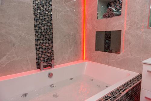 Aphrodite Suites Huddersfield offers accommodations in Huddersfield, 7.3 miles from Victoria Theatre and 15 miles from Belle Vue. This 5-star apartment offers free Wifi. Leeds Town Hall is 18 miles away, and First Direct Arena is 18 miles from the apartment. The accommodation comes with a fully equipped kitchen with a microwave and kettle, a TV, and a private bathroom with hot tub and shower. In colder months, guests can warm up by the in-room fireplace. At the apartment complex, units are equipped with bed linen and towels. You can play billiards, table tennis and squash at the apartment, and the area is popular for cycling and hiking. White Rose Shopping Centre is 17 miles from Aphrodite Suites Huddersfield, while Trinity Leeds is 18 miles from the property. Leeds Bradford International Airport is 19 miles away.