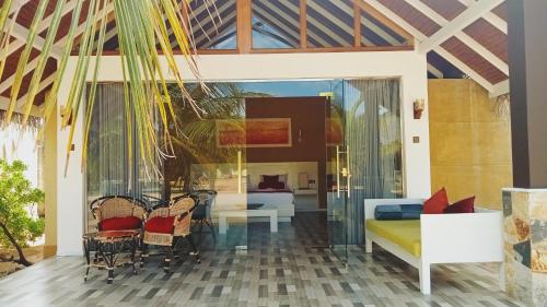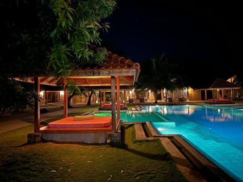 Facing the beachfront, BLUE WAVES kite surfing beach resort offers 5-star accommodations in Kalpitiya and features an outdoor swimming pool, garden and private beach area. Among the facilities at this property are room service and a 24-hour front desk, along with free WiFi throughout the property. The hotel has a terrace and pool views, and guests can enjoy a meal at the restaurant or a drink at the bar. All units are equipped with air conditioning, a TV with satellite channels, a fridge, a coffee machine, a shower, free toiletries and a closet. Every room is equipped with a private bathroom, while selected rooms include a patio and others also provide guests with a garden view. At the hotel each room has a seating area. Popular points of interest near BLUE WAVES kite surfing beach resort include Kudawa Beach, Kandakuliya Beach and Kalpitiya Beach. Bandaranaike International Airport is 86 miles away, and the property offers a paid airport shuttle service.