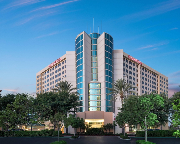 The Anaheim Marriott Suites is the premier and largest Marriott all suites full service hotel located just one mile from the Disneyland Resort attractions and the Anaheim Convention Center. The Marriott Suites features 371 spacious two-room suites, a contemporary lobby and 10,000 square feet of flexible meeting space catering to a variety of social events, meetings and weddings. Enjoy our spacious suite designed with a living room and a separate bedroom area. Guests will appreciate such amenities as a large well lit desk, wireless and high speed Internet access, voice messaging, two remote-controlled televisions, iron & ironing board, coffee/tea maker, mini refrigerator, room service, dry cleaning service and laundry facilities. Guests can work out on state-of-the-art exercise equipment, relax in the outdoor pool and whirlpool. Dine in Basil's, an American Restaurant or indulge in the simple luxuries of our very own Starbucks, just off the Lobby. Prepaid cards not accepted at check-in
