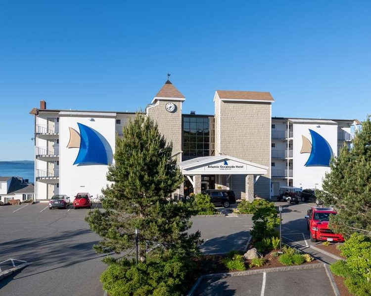 Experience the beauty of maine rugged coastline at the atlantic oceanside hotel and event center. Our beautiful Bar Harbor hotel is situated on 12 acres of oceanfront property just one mile from Acadia National Park and the shops and restaurants of historic downtown Bar Harbor Maine. With stunning ocean views waterfront access to gorgeous Frenchman Bay modern amenities indoor and outdoor pools and on-site restaurant the Atlantic Oceanside Hotel is the perfect place for an idyllic Maine getaway.