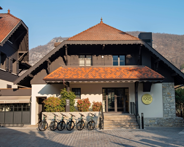 In 1903 Marie and Francois known as PERE BISE - founded the inn - a modest cabin by the lakes shore. In 1928 their son Marius turned it into a fine hotel hosting prominent figures of that era. In 1951 his wife Marguerite who was working as the establishments chef was awarded three Michelin stars. In the sixties their son and his wife Charlyne took over and their daughter joined in to help in 1987. In 2016 Magali and Jean Sulpice acquired the Auberge du Pere Bise. They undertook massive renovation and decoration works. On the 5 May 2017 they reopened and presented a fully rejuvenated and transformed inn. The establishment features a brand new restaurant the Bistrot 1903. The hotel received a five star rating. In 2018 Jean Sulpice was declared Cook of the Year by Gault and Millau and the gastronomic restaurant awarded two Michelin stars.Seasonal closure from 15 December 2019 to February 2020