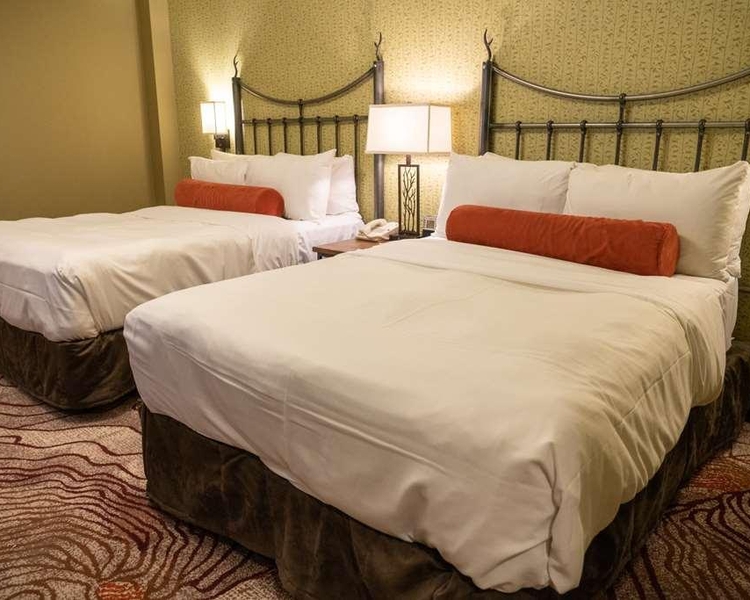 - The impressive hand hewn logs that accent the building exterior and lobby create the spectacular ambience of this mountain lodge. The massive fieldstone fireplace that dominates the lobby invites you to relax in front of warm crackling flames. The lodge features 190 well-appointed rooms including 6 spectacular loft suites. Facilities include The Keg Steakhouse and bar high-speed wireless internet in all guest rooms a heated underground parkade and an exercise room with 35 people jetted hot pool a steam room and exercise equipment. Downtown shops and restaurants are accessible via a pleasant 10-minute walk or by the Banff Transit System please see the front desk for complimentary passes. The friendly and outgoing staff is always happy to provide information or suggestions on any of Banff many exciting activities. - 190 ROOMS - 4 LEVELS - INTERIOR CORRIDORS