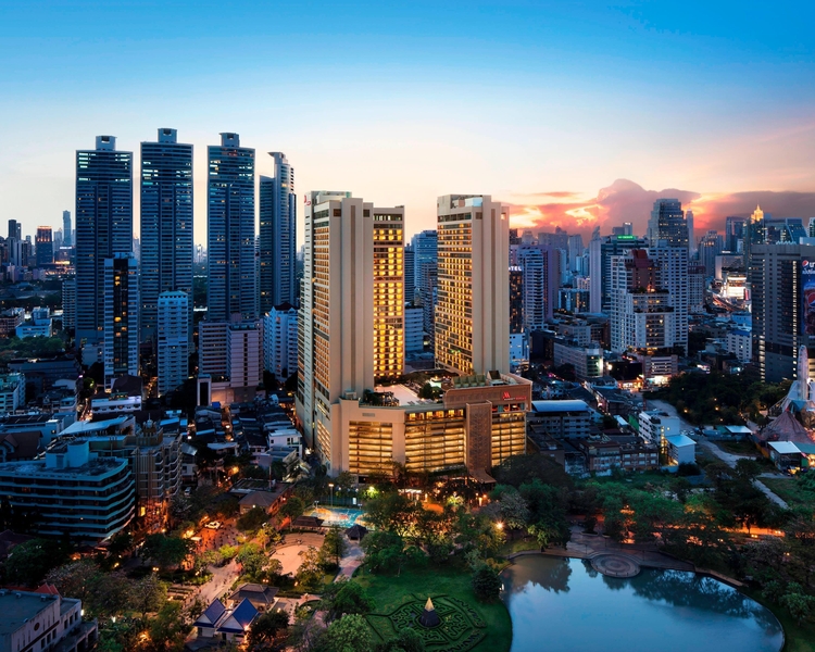 Connect with the energy of the city at Bangkok Marriott Marquis Queens Park. Perfect for both business trips and vacations, our hotel is ideally located on Sukhumvit Road, a short walk from popular downtown attractions and within easy reach of the BTS Skytrain, MRT subway and Suvarnabhumi Airport. Unwind at our rejuvenating pool and spa after a busy day of work or exploring Bangkok. Savor exceptional cuisine in our upscale restaurants, which feature award-winning Chinese, Japanese and Thai dishes. Plan a dynamic corporate event in 53,000 square feet of function space with capacity for up to 1,500 attendees. At day's end, retire to your refined hotel room or suite, where you'll enjoy luxury amenities and polished décor that blends classic Thai influences with modern accents. Many of our accommodations showcase breathtaking views of the downtown Bangkok skyline as well. Discover a tranquil oasis in the heart of at Sukhumvit at Bangkok Marriott Marquis Queen's Park.