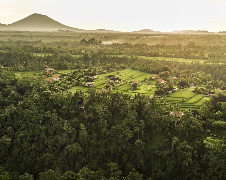 COMO Uma Ubud is located in the center of Bali. The hotel occupying a 3 hectare site is hidden on the fringe of Ubud overlooking the Tjampuhan Valley amid paddy fields carved out of hillsides backed by coconut palms and banyan trees. The river Oos runs below - one side stands a mountain. The town where there are numerous shops-galleries and local restaurants is a five-minute drive/20-minute walk.The heart of the hotel - the lobby -25m pool and bar - is open clean and simply designed. This contrasts with the paths running between tall lushly-planted walls that lead to rooms. All villas have walled tropical gardens. The bathrooms and principal living space is separated by an outdoor area. Carved panels open up rooms to incorporate views and the scent of forest while the volumes of light flows through interiors from the bedroom through to garden terraces - private courtyards and infinity-edge plunge pools. The Terrace Rooms located throughout the resort are each 45sqm with garden terrace