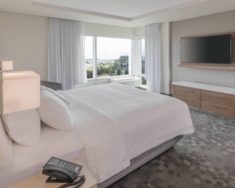 The 6-story Award-Winning Upscale Courtyard by Marriott hotel is ideally located in Burlington/Oakville, Ontario, and is one of the best center points from Toronto to Niagara Falls. Our hotel features 135 guest rooms including 10 suites with contactless services such as the mobile key card and contactless menu. Each room includes 55″ LED televisions with Netflix and Internet access, a flexible workspace, a mini-fridge, and plush bedding with Paul Mitchell grooming essentials. Guests will enjoy our state-of-the-art BISTRO Restaurant/Lounge & Patio at the center of it all, serving breakfast, lunch & dinner. Our hotel also offers inviting, flexible workspaces with free Wi-Fi, a well-equipped fitness center & an indoor saltwater pool. Adjacent to the Burlington Convention Centre, we can accommodate any meeting needs with electric vehicle charging stations and ample free parking. Whether you need a staycation or want a new place to call home, we want you to have the best experience!