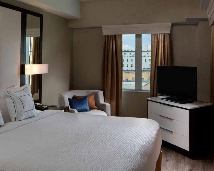 Soak up the Florida sun at Courtyard Miami Beach South Beach. Located on Washington Avenue, our hotel places you in the heart of the Art Deco Historic District in the South Beach neighborhood of Miami Beach. Enjoy our modern hotel amenities, including an American restaurant, valet parking, free Wi-Fi and a Starbucks® café. Our intimate event space offers custom catering options and AV equipment, ideal for board meetings and special occasions in South Beach, FL. Take a refreshing dip in our rooftop pool or maintain your exercise routine at our 24-hour fitness center featuring cardio equipment and free weights. At the end of your day in Miami Beach, retreat to your hotel room with separate living and sleeping areas, mini-refrigerators, plush bedding, work desks, flat-screen TVs and stylish décor. Whether you're in town for business or pleasure, make your stay a memorable one at Courtyard Miami Beach South Beach.