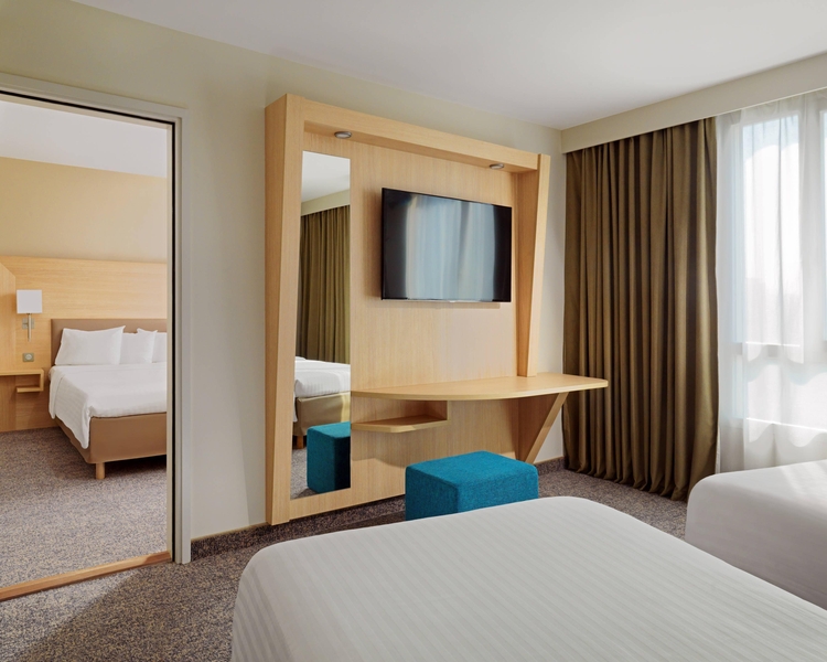 Allow the Courtyard Paris La Defense West - Colombes to set a brand new standard for comfort and convenience. We showcase an unparalleled hotel location in Colombes, France, only minutes by tramway from La Defense, Europe's largest international business center. In addition, we're a short tram ride from downtown Paris and Paris La Défense Arena. You'll feel right at home when you step into your spacious, newly remodeled hotel room; all lodging showcases terrific perks like a flat-screen TV, deluxe bedding, a coffee and tea maker, a mini-fridge and a large workspace. Savor local cuisine at our hotel's signature Kitchen and Bar restaurant, which features a lovely terrace, or keep in shape at our on-site fitness center. Choose our hotel to host your next meeting or social event here in Colombes; we boast elegant venue space, including our restaurant's stunningly appointed outdoor terrace. Make the Courtyard Paris La Defense West - Colombes your destination of choice for visit to France.