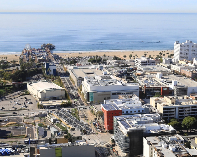 Located in downtown Santa Monica, just 3 blocks from the Santa Monica Pier and beach, the Courtyard by Marriott Santa Monica features oversized guest rooms with SoCal beach vibes in its design details and artwork. The hotel is steps away from the Santa Monica Place Mall and the citys best dining, shopping and entertainment at the Third Street Promenade. Relax with modern amenities including wood plank floors, free Wi-Fi and luxurious bedding. Begin your morning with a workout in our state-of-the-art fitness center before heading to Waterman's Café, our onsite restaurant, for a light bite and Starbucks® coffee. Soak up the sun on the 2nd floor pool deck or spend your days exploring the best of Southern California. After a fun day at the Santa Monica Pier, catch the Expo train, located just across from the hotel, to downtown L.A. only 7 miles away. If you're visiting the city for business, you'll love our hotel's prime downtown location and work-friendly facilities and meeting space.