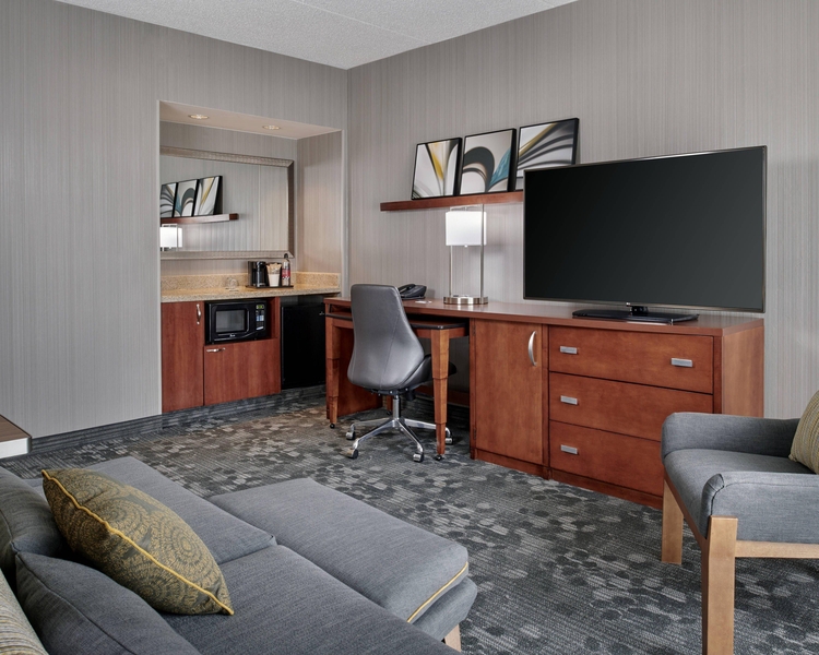 Traveling is relaxing and hassle-free when you stay at our NEWLY RENOVATED Courtyard Chicago Oakbrook Terrace. Our hotel is located 17 miles from the Chicago O'Hare International Airport and offers easy access to numerous area attractions. Enjoy close proximity to many local corporate offices, as well as the Oakbrook Center Mall, Odeum Expo Center, and Drury Lane Theatre. Feel right at home in our spacious rooms and suites featuring modern décor, luxury bedding, free Wi-Fi, ergonomic workstations, mini-refrigerators and flat-panel TVs. Start your day by fueling up with a delicious breakfast and coffee at The Bistro, our on-site restaurant, and return in the evening for dinner and cocktails. Keep up with your exercise routine at our 24-hour fitness center and indoor pool. Need to host an intimate business or social function? Reserve one of our two modern event venues, offering catering options and AV equipment. Business and leisure travelers have everything they need at Courtyard Chicago Oakbrook.