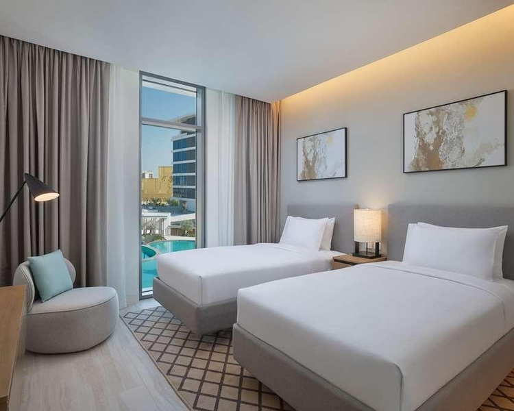 - Our pool is closed for renovation until March 31 2024. The pools at The WB Abu Dhabi Yas Island are available for guest use. Pool facilities at Hilton Abu Dhabi Yas Island and Caf Del Mar Abu Dhabi located 8 minutes from the property are also available. Work will take place daily between 9:00 am and 18:00 pm. Thank you for your patience and understanding.Located next to Warner Bros. World Abu Dhabi our hotel offers walk-through access to the theme park. Ferrari World Abu Dhabi and Yas Waterworld are less than a five minute drive from our doors. Enjoy our fitness centre outdoor pool and access to all the amenities at our neighbouring property including five restaurants and bars.