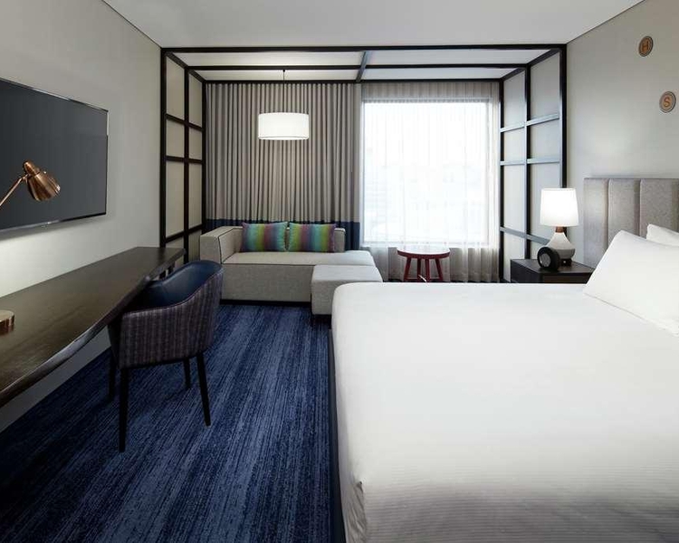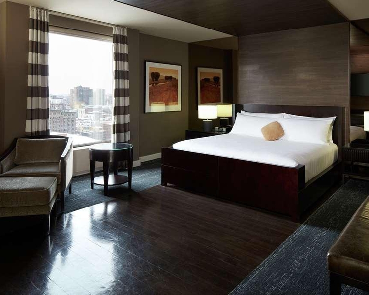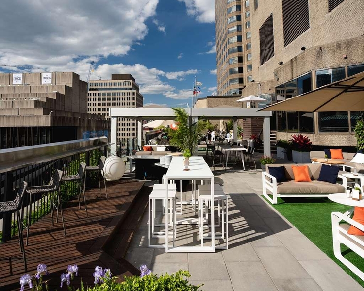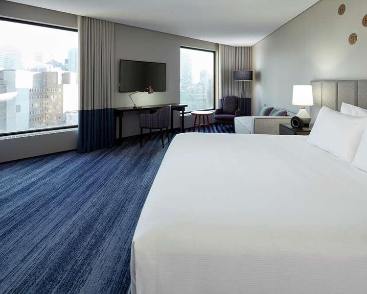 - The best of downtown is moments away at DoubleTree by Hilton Montreal. Set in the vibrant Quartier des spectacles entertainment district our hotel is linked to Complexe Desjardins mall and provides underground access to the convention center and two subway stations. We apos re steps from Place des Arts and Place des Festivals and it apos s a quick walk to Old Montreal Notre-Dame Basilica and other top attractions. We look forward to welcoming you with a warm DoubleTree Chocolate Chip Cookie at check-in. Our spacious guest rooms and suites feature comforts like a 55-inch TV free WiFi mini-fridge and walk-in shower. Choose an executive room with extra amenities including espresso machine bathrobes and slippers or opt for a suite with a separate living area and powder room. Greet the day with a hearty buffet breakfast at the Hub or cozy up in the evening at Bivouac Restaurant a stylish place for locally inspired cuisine prepared with seasonal ingredients. Morning room service is also available. The fitness center is perfect for cardio and the indoor pool features a sundeck with gorgeous downtown views. Our 37 700 sq. ft. indoor meeting space includes 25 flexible conference rooms and our 4 terraces feature 11 100 sq. ft. of outdoor space perfect for hosting a corporate meeting or cocktail party. Our dedicated team members can assist with the details.