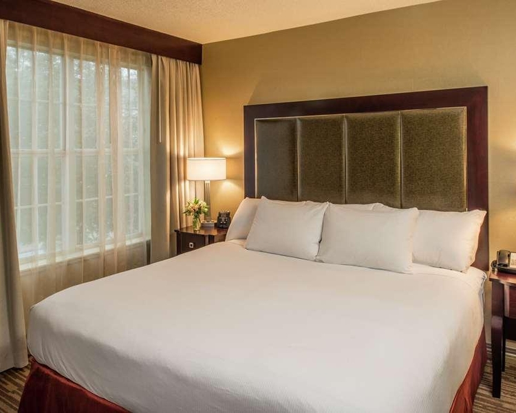 Some hotel services may not be available or may be limited during your visit.The following services and amenities are available, but with reduced service: Airport Shuttle, On-site Restaurant(s).The following services and amenities are currently not available: Concierge, Breakfast, Pool, Room Service, Valet Parking.The DoubleTree by Hilton Hotel Raleigh-Durham Airport at Research Triangle Park hotel is located 2.5 miles from the Raleigh-Durham International Airport (RDU) and is adjacent to the world-renowned Research Triangle Park (RTP), which is home to some of the world's largest and best known companies, such as IBM, GlaxoSmithKline, BASF, General Electric, Deloitte, Bayer CropScience, and Cisco Systems to name just a few. The hotel is nestled on a quiet hilltop among the beautifully wooded North Carolina landscape. Your stay with us with be a "10" as you experience our highly ranked customer service and enjoy one of the many amenities we have to offer. DoubleTree by Hilton Hotel Raleigh-Durham Airport at Research Triangle Park features Include: Known locally as "The Mansion on the Hill", this southern mansion styled hotel caters to the savviest of business and meeting travelers, while providing a resort atmosphere. Unique features such as the grand veranda, with its wicker rocking chairs and porch swings, and the exposed ceiling beams in the lobby set this hotel apart from any other in the Raleigh-Durham area. Hotel guests will appreciate the many services and amenities offered at the Hilton. Services include scheduled complimentary shuttle service within a 5-mile radius of the hotel and to Raleigh-Durham International Airport in North Carolina. Complimentary 24-hour self-serve business center. Well-equipped 24-hour fitness center featuring updated equipment. Outdoor pool (open seasonally) in a tree-filled courtyard. Full service restaurant opened from 6:30am to 10pm and an energetic yet cozy Lobby Bar. DoubleTree by Hilton Hotel Raleigh-Durham Airport at Research Triangle Park room features Include: Well appointed guestrooms feature wireless high-speed internet access. Spacious work desk. Two telephones, each with two lines, voice mail and data ports. Digital thermostats for precise climate control. Standard amenities include a hair dryer, coffee maker, iron and board and luxurious bath amenities. For discerning guests wanting more luxury and space, king suites, which have a separate living room that features a wet bar area with microwave and refrigerator, are also available. Doubletree by Hilton Hotel Raleigh-Durham Airport at Research Triangle Park Hotel Area Information: Close proximity to the Raleigh-Durham International Airport and Research Triangle Park (RTP). Convenient to the area's premier universities - Duke University, NC State, North Carolina Central University, and the University of North Carolina at Chapel Hill. Nearby are the Streets of SouthPoint Mall, RBC Entertainment Center, and Alltel Pavilion. Within a 20 minute drive to the North Carolina State Capitol. 15 well renowned championship golf courses within a 30 minute drive from hotel. Just minutes from the ''Home of the only Harley-Davidson Drag Racing Museum in the world''. Located 15 minutes from our hotel is The Angus Barn; one of the areas oldest, most famous unique restaurants in the region. Whether traveling on business or pleasure, the DoubleTree by Hilton Raleigh-Durham Airport at Research Triangle Park hotel is the perfect choice when in the Raleigh-Durham, North Carolina area.