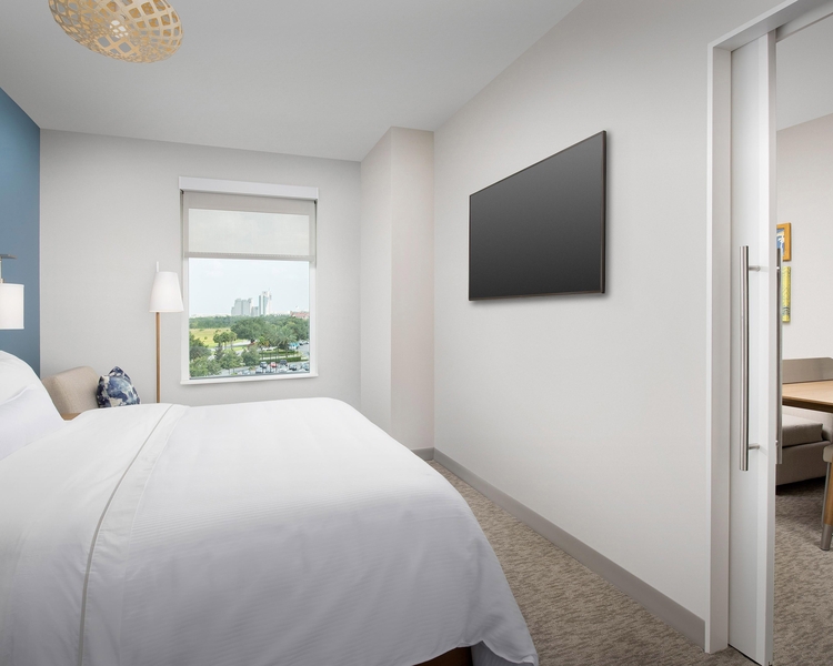 Located in the heart of Orlandos famed Entertainment District, our new hotel sits at the base of ICON Park and puts you in the middle of more than 50 restaurants, bars, and attractions. Thrill thrives here with vacation accommodations that place the fun in functional, with full-kitchen suites and comfy delights, whether you're here for a few days or a few weeks. Move in Motion, our 24-hour fitness center, offering Peloton bikes and everything you need to stay fit on the road. Refresh during your stay and take a dip in the outdoor saline pool featuring gram-worthy views of the Wheel and sunset delights. Our outdoor patio with fire pit is perfect for ending the day with complimentary sips from our evening Relax reception, or with a crave-able delight from the Restore market. Pets are pals at our Orlando pet friendly hotel, with signature comforts designed for their enjoyment, equally as well as yours. Recharge with a soothing night's sleep in our signature Heavenly Beds, and get ready to jump-start your day!