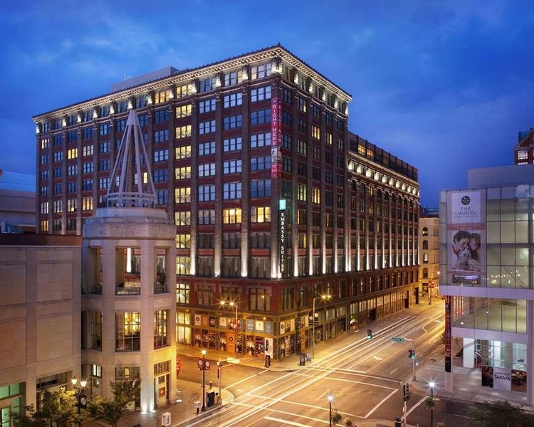 Some hotel services may not be available or may be limited during your visit.The following services and amenities are available, but with reduced service: Pool.The following services and amenities are currently not available: Business Center, On-site Restaurant(s), Room Service.This hotel is 100pct non smoking. LEED Silver Certified, this former department store was re-imagined in 2011 as the Embassy Suites Downtown. Part of the MX District, a mixed-use urban redevelopment project connecting people, housing, business, jobs and recreation in the revitalized Washington Avenue district in downtown St. Louis, it has the best of the Embassy Suites attributes: - Complimentary made-to-order breakfast - Complimentary evening reception - Closed guest room corridor design eliminating atrium noise for a quiet night's sleep Comfort is key for business travelers. All suites offer: - Large suites with expansive ceiling heights - Separate bedroom and living room giving you space for work and space for you - 37-inch LCD Flat Panel TV in the bedroom and 42-once in the living room - Wet bar, refrigerator and microwave Your time is valuable: - Enjoy our on-site complimentary Precor Fitness Center before you head to breakfast - If you’re in a hurry, we even offer a grab-and-go station - Complimentary business center including print-from-suite capabilities - Our Atrium Restaurant offers American Fare for your dining pleasure - Within the MX district, six great restaurants offer culinary variety - An additional ten restaurants are within walking distance on Washington Ave Entertaining your team or clients is easy: - We are just three blocks from the Lumiere Place Casino Link - Busch Stadium, home of the St. Louis Cardinals, is just seven blocks away With access from I-70, I-64, I-44,and I-55, the Embassy Suites Downtown is only 14 miles from Lambert St. Louis International Airport and 1 block from the MetroLink Light Rail Convention Center Station.