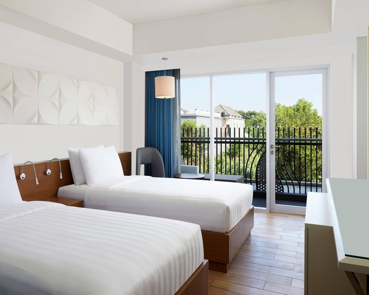 Elevate trips to Bali, Indonesia, at Fairfield Bali South Kuta. Our hotel is 10 minutes from the international airport. Find us within walking distance of Jerman Beach and many shops and restaurants in South Kuta, or visit popular Bali attractions like Waterbom Bali waterpark, Kuta Art Center, Lippo Mall Kuta and the Discovery Shopping Mall. Ask about our current hotel offers and delight in amenities like 24-hour reception, free Wi-Fi and limited on-site parking. Maintain your fitness routine in our hotel's rooftop pool and 24-hour fitness center. Try our hotel breakfast or stop by Dery's Restaurant, a casual sports bar, for Asian and Western specialties any time of day. Head up to the Cabana Pool & Sky Bar for beers, cocktails and light bites on the rooftop. Host events for 50 guests in our hotel's modern meeting space. Then retire to one of 71 rooms and suites with modern decor, flat-screen TVs, air conditioning and coffee makers. Select rooms include a balcony for memorable stays in South Kuta, Bali.
