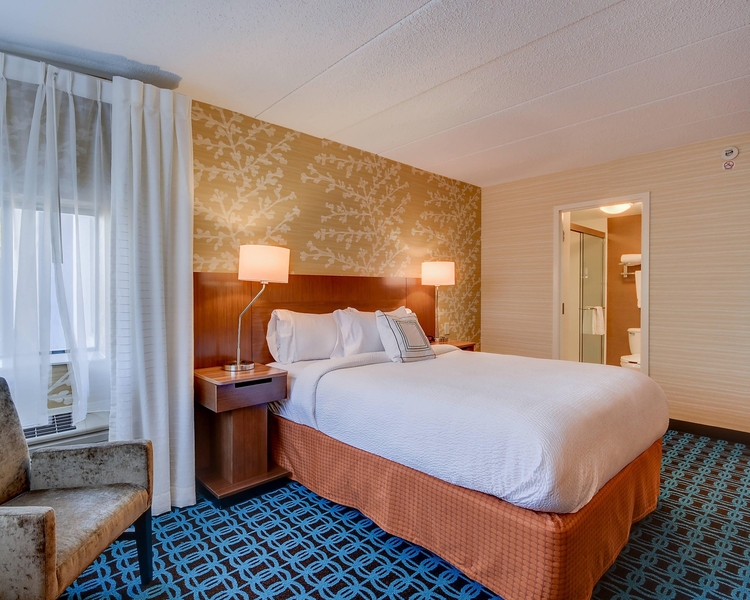 Experience a stress-free stay at Fairfield Inn Boston Woburn/Burlington. Our hotel in the historic Woburn MA community offers all the comforts you need to maintain your balanced routine during your stay. Relax in spacious rooms with free Wi-Fi, plush Marriott bedding, and mobile workstations. Start your day satisfied with our free buffet breakfast served daily, and enjoy the convenience of restaurants near our hotel like Uno Chicago Bar & Grill, Joe's, and Bertucci's. Stay active with cardio equipment and free weights at our hotel fitness center, and unwind in the refreshing seasonal outdoor pool. During your stay, enjoy easy access to popular attractions near our hotel like the historic Woburn Public Library, Lord Hobo Brewing Company, and shopping, dining, and sightseeing in Boston. Simplify group travel at our Woburn business hotel with discounted rates when you book 10 or more rooms. Everything you need is waiting for you at Fairfield Inn Boston Woburn/Burlington.