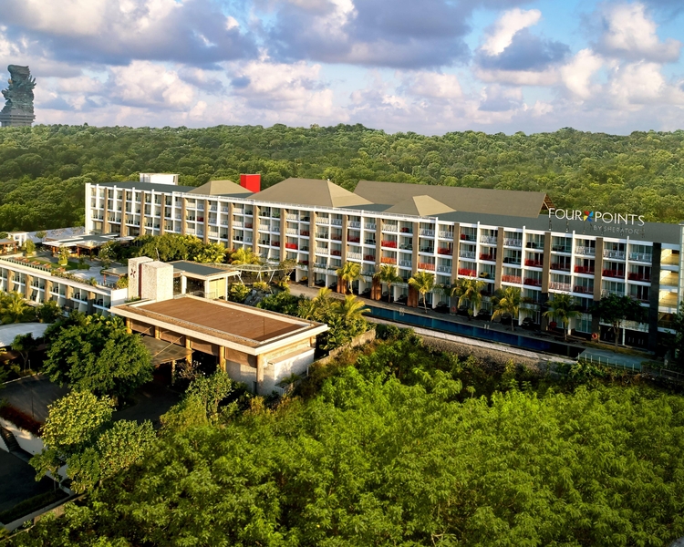Four Points by Sheraton Bali, Ungasan welcomes travelers to Kuta Selatan, Indonesia with a stylish, comfortable and affordable experience. Located near the beach and overlooking the bright blue water of Jimbaran Bay, our hotel features modern rooms with free Wi-Fi and large workspaces. Spacious suites provide a separate living room and dining table. For those planning an event in Bali, we offer over 19,000 square feet of space, including one of Ungasan's largest pillarless ballrooms; exchange your wedding vows in a glass-enclosed chapel overlooking Jimbaran Bay and Garuda Wisnu Kencana Cultural Park. Our hotel is also close to the Uluwatu Temple, only moments away. Wellness is a focus here; hotel guests have access to a 24-hour fitness center, massage services and an outdoor infinity pool with views of Jimbaran Bay. Dining includes an indoor-outdoor restaurant showcasing local and international cuisines. We look forward to seeing you in Kuta Selatan at Four Points by Sheraton Bali, Ungasan.