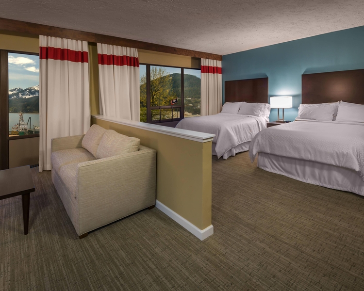 The city's only branded hotel, Four Points by Sheraton Juneau offers style and comfort in the historic downtown district. Discover a scenic retreat in spacious accommodations with contemporary amenities, complimentary Wi-Fi, plush bedding and inspiring ocean views. Stay in the Golden Square Mile within moments of shops, restaurants, museums and celebrated attractions, including America's only glacier within city limits. Watch your favorite team play live at our McGivney's Sports Bar and Grill, featuring delectable American cuisine and several different beers on tap. After an unforgettable day of shopping or sightseeing, energize your body in our modern, 24-hour fitness center with cardiovascular equipment and free weights. The preferred Juneau hotel of the Centennial Hall Convention Center, we offer contemporary accommodations within steps of the Seadrome Marina and the waterfront. Make your reservations at Four Points by Sheraton Juneau and enjoy a relaxing respite in a stunning travel destination.