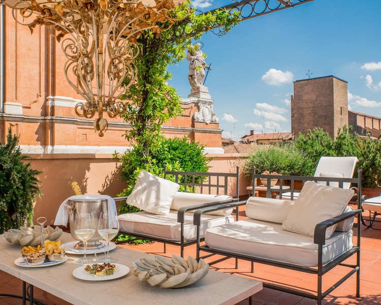 Grand Hotel Majestic gia Baglioni is a prestigious luxury hotel situated in the heart of Bologna offering its guests the atmosphere of a grand hotel with every modern amenity.Convenient to all points of interest and to Congress Hall it is minutes from palaces cathedrals galleries and museums. 5 minutes from the rail station and 15 minutes from the airport. Ideal for leisure and business travelers.The 109 spacious elegant rooms where 17 are Junior Suites Suites and Presidential Suites are cosy and at the same time refined.The prestigious I Carracci restaurant housed in a splendid room painted with frescoes by artist from the famous Carracci school offers excellent Italian and Bolognese cuisine. Elegant surroundings and high class services add further value to the refined cuisine.The hotel also has elegant conference rooms for up to 120 people equipped with the most modern technical equipments. A private garage completes the range of services.