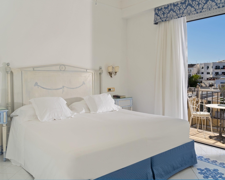 Capri has been known for its spectacular beauty since ancient times. Although the island bustles with incessant activity connoisseurs of lifes finer pleasures know that there is an oasis of calm to be found. All is intimate luxury from the inviting sofas and sparkling chandeliers to the spacious comfort of your room. The penthouse suites enjoy spectacular views over the Faraglioni rocks. Dining is a delight throughout the day and when the sun goes down. La Colombaia the informal poolside neapolitan restaurant is enchanting. The Rendez-Vous restaurant overlooking Via Camerelle and its designer boutiques is a very trendy option for dinner. Relaxing by the circular outdoor pool is irresistible and those seeking personal pampering will find a range of soothing treatments at the QvisiBeauty centre. Alternatively the terrace bar provides ample opportunity to watch this glamourous world go by.