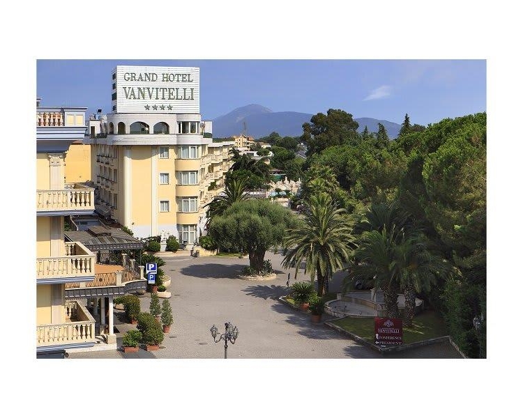 The Grand Hotel Vanvitelli is a unique icon of hospitality in the region of Campania. It is also well known for its attention to the needs of its guests. The hotel is strategically located just two kilometres from the famous Reggia Palace in Caserta and a short distance from the airport in Capodichino and the centre of Naples. The Grand Hotel Vanvitelli has one of the largest conference centres in the region-offering 16 modern rooms with a seating capacity of up to 500 people- as well as six smaller rooms for more private meetings. The hotel also has a large- free car park for guests- five restaurants- a fitness centre and an elegant SPA where you can regenerate your body and mind. The elegance of its ample spaces and the rare beauty of its surroundings make the Grand Hotel Vanvitelli a prestigious choice for any event.