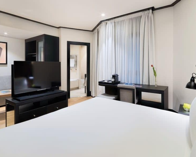 The H10 Puerta de Alcalá is located near El Retiro Park, in Madrid's exclusive Salamanca district, which houses the best boutiques and is the financial nerve centre of the city. The hotel features elegant rooms, the La Galería Restaurant, a Lobby Bar, four meeting rooms and the impressive El Cielo de Alcalá Terrace with plunge pool and panoramic views of the city.