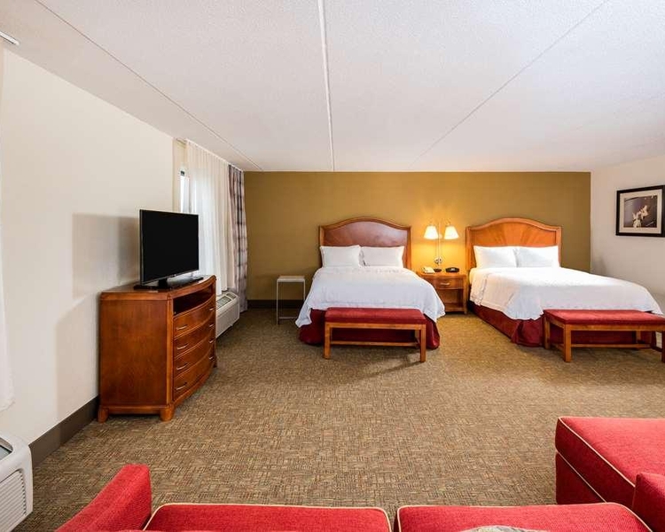 The Hampton Inn Roanoke - Hollins/I-81 hotel is located off Virginia Interstate I-81at Exit 146 near Hollins University. We are 5 miles from downtown Roanoke, Virginia and 2 miles from Hollins University. There is a shopping mall and restaurants within 3 miles of this Hampton Inn hotel. Whether traveling to Roanoke on business or pleasure, our Hampton Inn hotel guests enjoy amenities which include complimentary continental breakfast, in-room coffeemaker and TV with cable. Some rooms are equipped with whirlpool tubs. We also offer to our Roanoke Hampton Inn hotel guests connecting rooms, cribs, exercise gym, irons, indoor pool and refrigerators. Laundry/valet services, guest laundromat, meeting/banquet facilities and audio visual equipment are available for a nominal fee. We love having you here in Virginia at the Hampton Inn Roanoke - Hollins hotel.