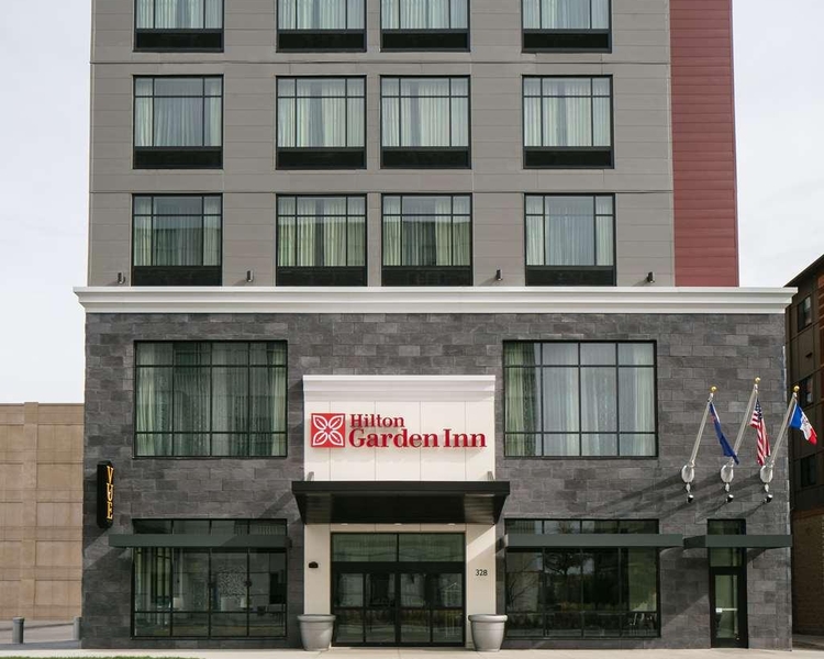 - Stay at Hilton Garden Inn Iowa City Downtown University and be near it all. We re a quick walk to restaurants shops and nightlife as well as the University of Iowa campus and sports arenas. Four hospitals are a mile away and major offices like Oral-B and Procter amp Gamble are within 15 minutes. See a Hawkeyes game while you re here or spend a day immersed in prairie life at the Amana Colonies. For your convenience we offer shuttle service to destinations within 5 miles of the hotel. Don t miss Vue our rooftop restaurant and outdoor patio offering views over downtown from 12 floors up. Our casual Garden Grille restaurant serves breakfast and lunch and the Pavilion Pantry is always open for snacks drinks and frozen meals. Take a dip in our heated pool and whirlpool or burn calories in the fitness center. Along with a 24-hour business center we have 2 700 sq. ft. of Downtown Iowa City meeting space that s perfect for corporate events and wedding receptions.