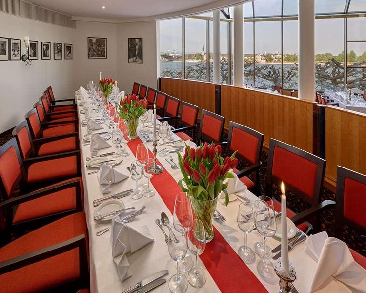 - Stay at the fully renovated Hilton Mainz hotel set on the edge of the picturesque old town of Mainz on the left bank of the River Rhine. Business is easy at this modern and welcoming Mainz hotel offering 10 fully equipped meeting rooms 6 of which are newly built and offer stunning views of the river Rhine. Take advantage of direct access to the nearby Congress Centrum Mainz which can accommodate up to 5000 people. Take in river views as you enjoy gourmet cuisine in The Brasserie restaurant or indulge in the buffet or la carte menu in stylish Weinstube restaurant at the Hilton Mainz hotel. Keep fit during your stay with the fitness center by Precor enjoy a river cruise along the Rhine or try your luck in the casino located next to the hotel. All Hilton Mainz hotel rooms offer wireless internet access an HD plasma TV and a separate working area. Upgrade to a Deluxe Plus Room at this Mainz hotel and enjoy impressive views of the River Rhine.