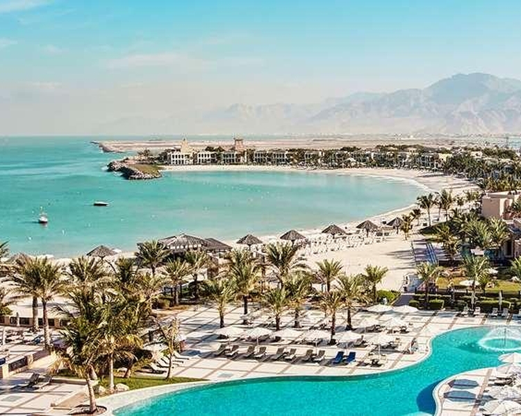- Set on 1.5 km of private beach our resort is 30 minutes from Ras Al Khaimah Airport and about an hour from Dubai Airport. The hotel overlooks the Persian Gulf. We have a traditional Hammam and nine treatment rooms in our spa and three function rooms in our conference space. Savor cuisines from around the world in one of our 11 bars and restaurants.