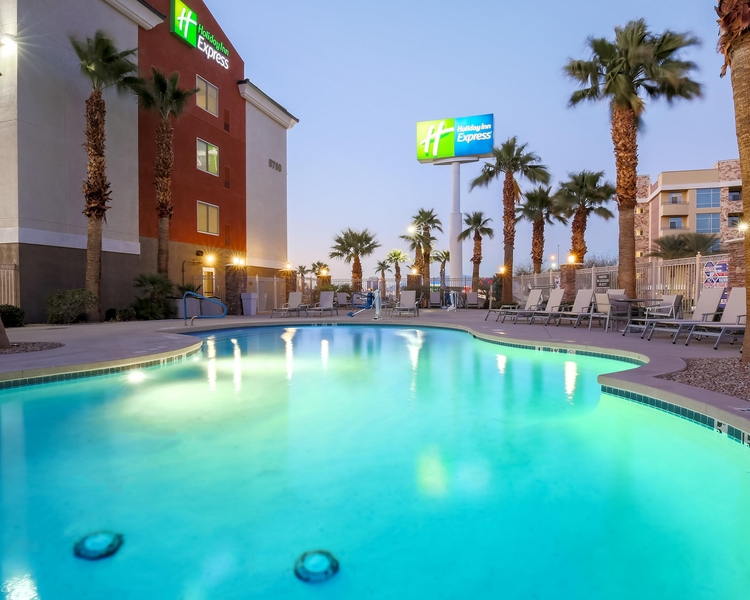The Holiday Inn Express® Hotel Las Vegas South boasts an excellent location near some of the Silver State's most popular attractions. Guests appreciate no resort fees, being close to Mandalay Bay, within walking distance of the Raiders Stadium, the thriving Las Vegas Strip, and the classy Las Vegas Convention Center. Corporate travelers enjoy our business center and close proximity to McCarran International Airport and businesses like Switch, IBM, Pepsi and IGT, as well as the T-Mobile Arena- Home of the Las Vegas Golden Knights and the University of Nevada, Las Vegas. Enjoy popular attractions currently open- Neon Museum, Mob Museum, Las Vegas Hot Air Balloon Rides, Seven Magic Mountain and High Roller. While visiting our Holiday Inn Express hotel near the Las Vegas Airport, guests can explore the bustling, energetic Las Vegas Strip or attend an event at the Las Vegas Convention Center. If you're in the mood for some area shopping, be sure to check out Town Square, home to several upscale stores and restaurants. After a day at Town Square, unwind at the Fremont Street Experience or attend a race at the nearby Las Vegas Motor Speedway. Our Las Vegas accommodations include free WiFi, complimentary grab-and-go breakfast, on-site fitness center, and outdoor pool. Relax in your guest room with comfortable bedding, HDTV’s with premium channels, well-lit work area, and much more. Let us help you plan your Las Vegas getaway. We can’t wait for you to arrive.