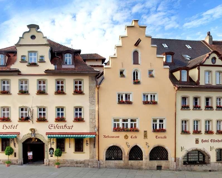 A hotel legend is back... with loving attention to detail hospitality and charm. Currently we can welcome you to our classic rooms in the Ratskeller building at Herrngasse 4. Here we offer an Eisenhut light experience as a Garni hotel with a balanced and rich breakfast and a beautiful lounge area in the historic hotel lobby. We are also working hard on being able to open the doors of all other room categories and the restaurants in our main building which are currently being renovated. We look forward to your stay with us in the Hotel Eisenhut located in the beautiful center of Rothenburg ob der Tauber. In the heart of Rothenburg ob der Tauber we welcome you to our four patrician houses from the 15th and 16th centuries. Our hotel in the historic Rothenburg ob der Tauber offers you the ideal starting point for your Rothenburg experience whether that is an overnight stay- a short break or a conference. Benefit from our central location and enjoy a fantastic view out over the Tauber Valley.
