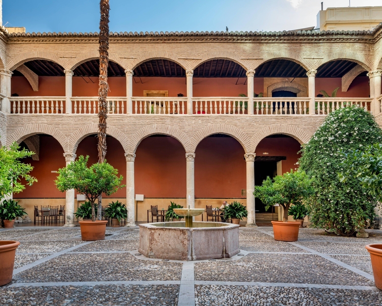 The Palacio de Santa Paula Autograph Collection is located in the historic center of Granada near the Albaicín and Sacro Monte areas, the Cathedral and the Royal Chapel, the historical Gardens of the Triumph, the Archeological museum, and, of course, the Alhambra. The beautiful hotel, one of the best five star hotels in Granada, is a 75-room restored masterpiece that was also declared an artistic and historic monument. It replaced the Santa Paula Convent and the Casa Morisca, which existed in the XVI and XII centuries respectively. This luxury hotels restaurant, “El Claustro”, where the Santa Paula convent refectory used to be, offers guests haute cuisine that fuses elements of traditional Andalusian gastronomy with modern culinary concepts. Free Wi-Fi access throughout the hotel so that guests can connect to the internet whenever they want. R.T.A. Registration Number H/GR/01177.