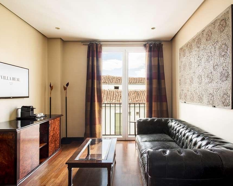 Right in the heart of the art triangle formed by the most important museums in the city El Prado Museum Reina Sofia National Art Museum and ThyssenBornemisza Museum it has one of the most authentic architectural styles in the old centre of Madrid and in the Barrio de las Letras literary quarter. The classic style building which was built in the 80s was successfully adapted to the typical style in the neighbourhood. Its architect Fernando Chueca Goitia was also responsible for extending the El Prado Museum and the La Almudena Cathedral among other works. The construction involved luxurious materials such as marble stone marquetry and maple root inlays and woods. A recent refurbishment combined contemporary elements to turn it into a luxury hotel. The Villa Real Hotel 5* in the centre of Madrid has 115 luxury rooms and suites wedding reception rooms meeting rooms and function rooms a gym car park and the East 47 Restaurant Cocktail Bar as well as access summer only to the terrace and pool of the Urban Hotel only a few metres away. It also offers parking with power socket for electric vehicles.