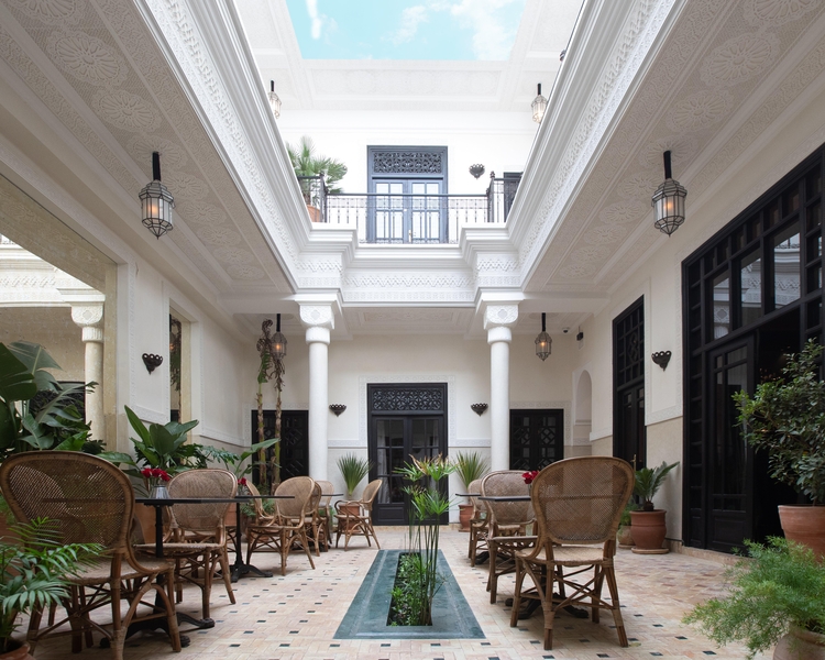 Veronique and Pascal Beherec have borrowed the very best of Moroccan craftsmanship to decorate the interiors of this palace full of gorgeous transparent fabrics- sofas and pillowcases embroidered with gold thread. The moment you set down your bags here you know you are in for a real treat. A big garden and patios full of plants- a health facilities and beauty salon- a restaurant that blends French- Mediterranean and Moroccan influences- a cigar cellar- three swimming pools- one on the roof overlooking the Koutoubia Mosque and the Atlas mountains- a bar open all day so that you can sip mint tea and nibble at Moroccan sweetmeats at your leisure What more could you wish for.The property is closed for business during the year over the following dates- NO ANNUAL CLOSINGCLUB 5C- Hotel welcomes Relais and Chateaux Club 5C members with a VIP Welcome and a Discovery Privilege. Please include the Club 5C membership number in the reservation and please show your Club 5C membership card on arrival.