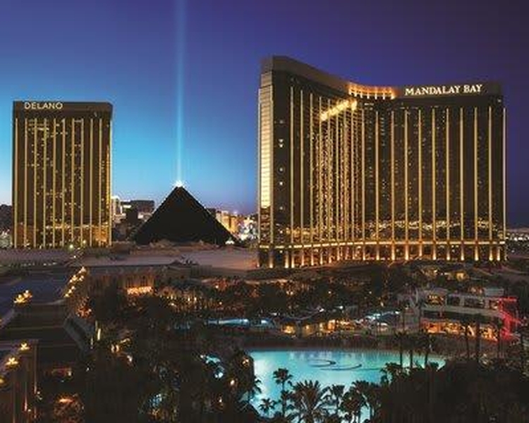 Mandalay Bay Resort and Casino is a unique destination resort set on 120 lush acres on the Las Vegas Strip. Restaurants stunningly designed by top architects and designers provide world-class dining experiences include Stripsteak by Michael Mina Libertine Social by Shawn McClain Border Grill and KUMI to name a few. The 30000-square-foot spa is one of the finest and offers comprehensive services treatments and exercise equipment. The casino offers 135000 square feet of gaming excitement. Visit the Shoppes at Mandalay Place a collection of experiential venues eclectic stores and one-of a-kind shops. Shark Reef aquarium is home to over 2000 animals including the saw fish giant rays endangered green sea turtle jellyfish and the rare golden crocodile.