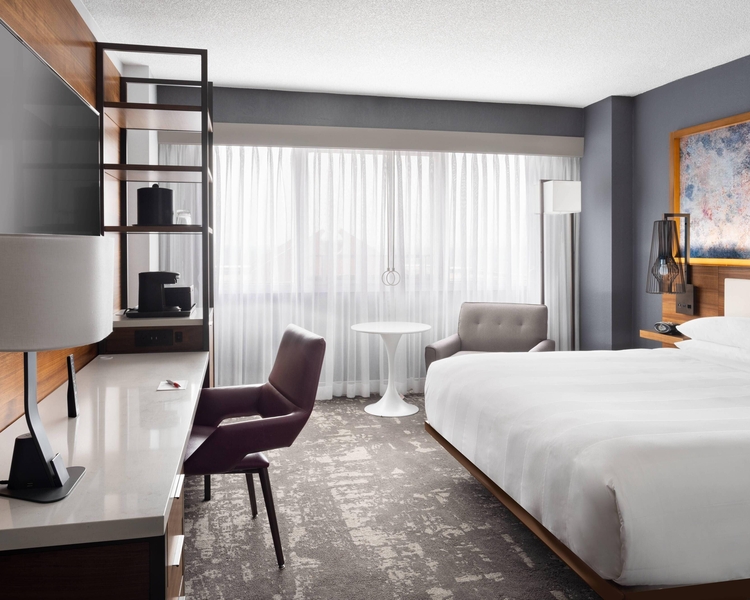 Totally renovated hotel. Multi-million dollar hotel redesign completed in 2020, including modern guest rooms with walk in showers. Updated fitness center, meeting space, lobby, restaurant and bar. Your trip to North Carolina will be a rewarding one when you stay at Marriott Greensboro Downtown. The only Marriott hotel in downtown, we're steps from the best shopping and dining, and just 11 miles from Piedmont Triad International Airport. Greensboro Coliseum, Steven Tanger Center for the Performing Arts and Greensboro Aquatic Center are nearby. Students and alumni will appreciate our position near North Carolina A&T State University, Elon University, Highpoint University, and University of North Carolina at Greensboro. Make yourself at home in newly renovated rooms with luxury bedding. Watch your favorite show on our 55" screen television with access to Netflix, YouTube, and Hulu.
