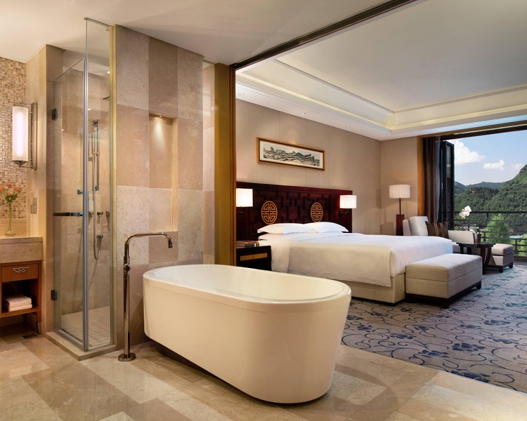 Retreat to Wutai Mountain Marriott Hotel. Our modern hotel is located in the highly acclaimed Mount Wutai Area in Xinzhou. Settle into one of our 246 guestrooms which feature breathtaking views of Mount Wutai. Our hotel also has more than 2,000 square meters of meeting space, including a 1,049-square-meter, pillarless Grand Ballroom, which can be divided into four rooms. Guests can enjoy a variety of local and international culinary delights at our two restaurants and lounge located in the hotel. We also offer a variety of facilities and amenities to allow guests to indulge and rejuvenate. These include an indoor swimming pool, a 24- hour gym center, KTV rooms and more. Explore nearby attractions in Xinzhou and the surrounding area, including Encore Mount Wutai Theater, Baoding, Taiyuan, Beijing and the southern entrance of the scenic spot. Make plans to experience the attractions and beauty of Wutai Mountain in spectacular fashion at our Xinzhou hotel.