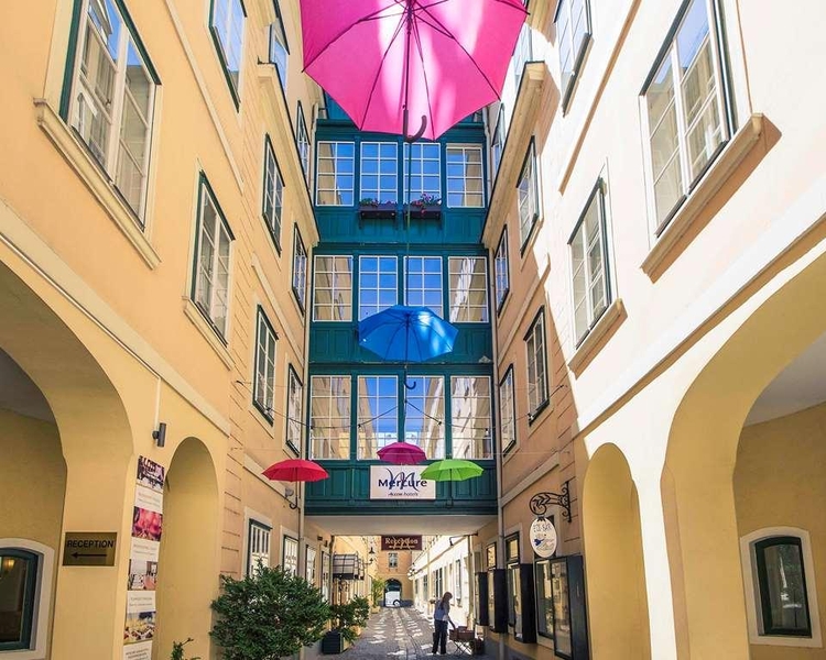 Mercure Grand Hotel Biedermeier welcomes you! Centrally located, this 4 star hotel presents itself in style in an old Viennese passage and at the same time as an elegant stage for the charm and comfort of today's Biedermeier. 198 air-conditioned rooms, 2 restaurants, green terrace, café and bar. RelaxClub with sauna.