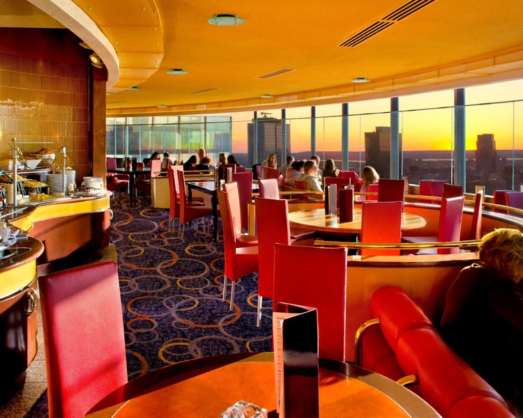 New York Marriott Marquis is an iconic fixture of Times Square and brilliantly captures the vibrant energy and spirit of Manhattan. Located on West 46th Street and Broadway, our hotel places guests near some of NYC's most exciting attractions including Rockefeller Center, Radio City Music Hall and the Theater District. Experience incredible restaurants including New York's only revolving dining room with 360-degree views of Manhattan. Set the stage for a relaxing stay with our 24-hour fitness center, in-room dining, and 5,000 square foot M Club. Comprising over 100,000 square feet of space and enhanced by cutting-edge technology, our meeting spaces offer inspired choices for your event in Times Square. After an eventful day of sightseeing, relax and recharge in spacious hotel accommodations with views of Broadway, Times Square, and Manhattan. Reimagine travel at the New York Marriott Marquis.