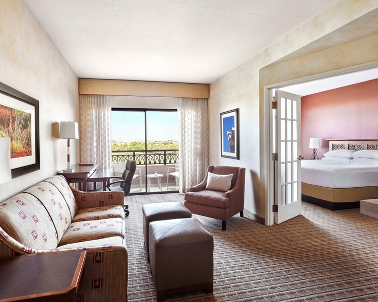Surrounded by stunning natural desert scape and the lush links of championship golf, this North Scottsdale hotel truly is a hidden gem. The hotel is a quick shuttle ride to Scottsdale Quarter and Kierland Commons open-air shopping centers that are home to over 80 shops, the Quad and several sought-after restaurants and wine bars. Explore beautiful sunny Arizona at nearby attractions including Westworld of Scottsdale, TPC Scottsdale, McDowell Mountain Regional Park, Butterfly Wonderland, and OdySea Aquarium. After a day of adventure, revel in your two-room sanctuary and a bed made for slumber. Every room is an executive suite with ample room to move, this is perfect set-up for remote work and play. Only a few steps away is ample meeting space, pool and spa, and a welcoming fitness center. Savor southwestern culinary delights at Agave Bar & Grill with spectacular sunset views from the patio. Pursue your passion here, its all about you.